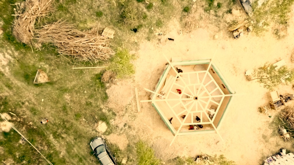 Semana tras semana iremos conociendo a las gentes del voluntariado, que llegan en busca de conocimientos, red y levantar su propia casa el día de mañana. Fermín Olalla, será el encargado de orientar y facilitar la construcción, explicando el cómo, el porqué y los pasos del proceso. En tan sólo 4 semanas se levantará toda la estructura, desde los cimientos hasta el techo. La apuesta es levantar un FLEXÁGONO, una casa hexagonal pensada para la autoconstrucción, elaborada con materiales naturales, de cercanía y de fácil acceso. Madera, barro y paja del terreno.